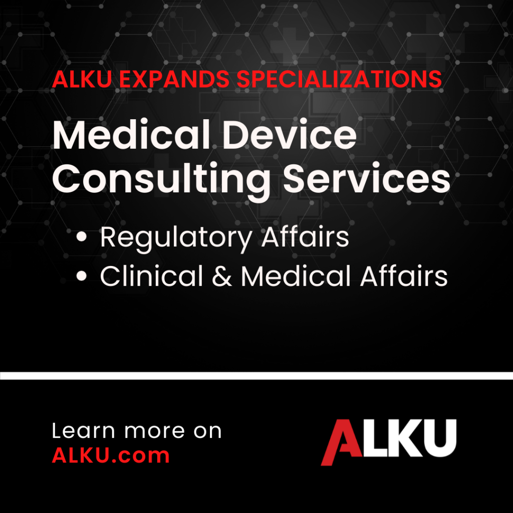 Andover, Massachusetts – ALKU has further expanded its offerings within the Medical Device Industry. ALKU has been supporting Regulatory & Scientific Affairs within the Medical Device Industry for years. After observing a demand in the market, ALKU identified the need to specialize and dedicate resources to focus exclusively on providing Clinical & Medical Affairs, in addition to Regulatory Affairs consulting services to best serve their clients and consultants.