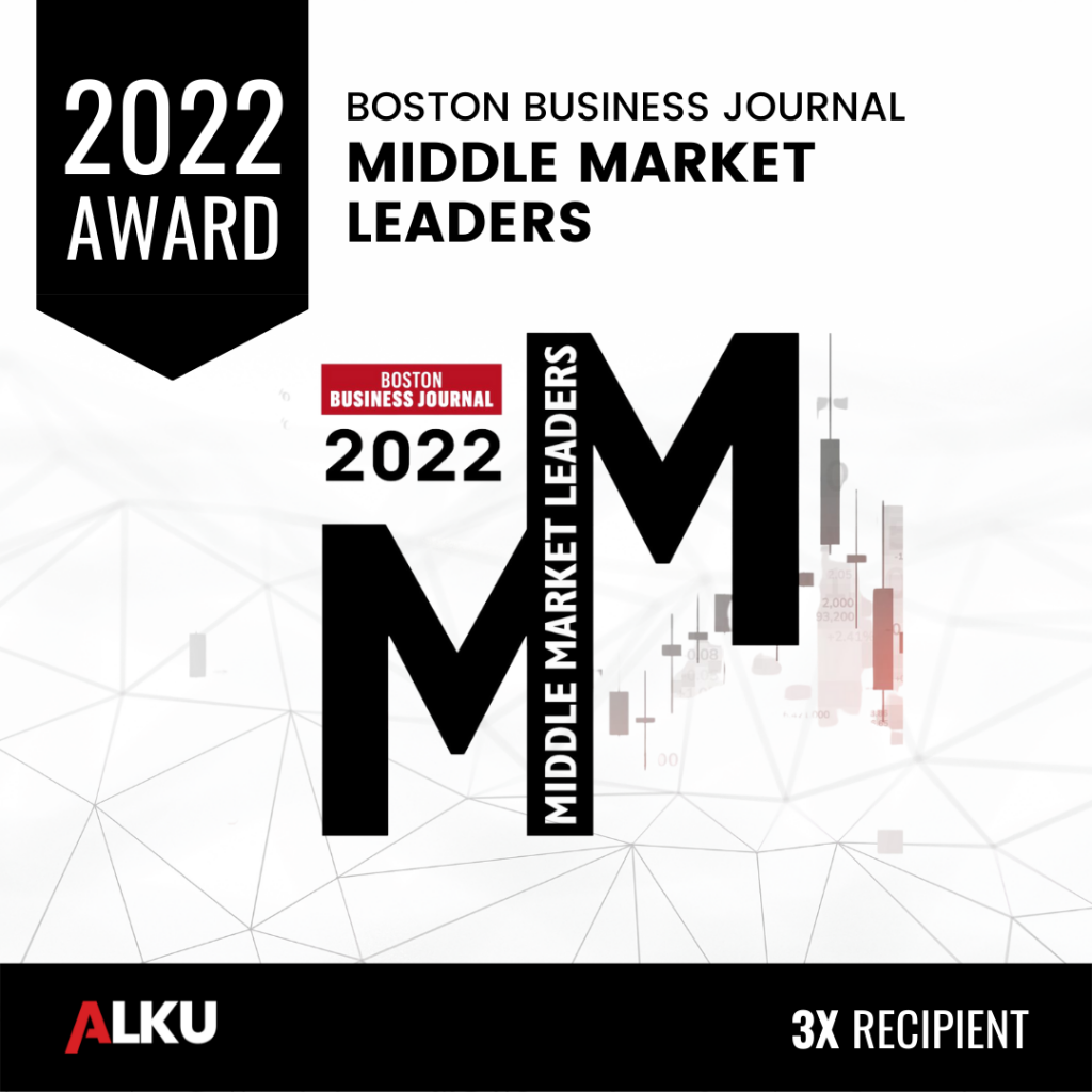 Andover, Massachusetts – ALKU has been named one of the Boston Business Journal’s Middle Market Leaders, a ranking of the 50 highest growth companies in Massachusetts. This is the 3rd year ALKU has been recognized on this list, and this year ALKU ranked #33 on the list.