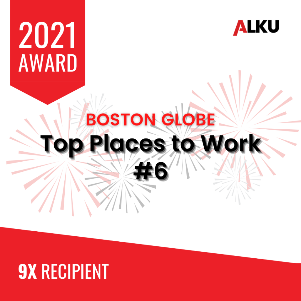 For the 9th time in a row, ALKU is celebrating earning a spot on the Boston Globe’s Top Places to Work list! ALKU has ranked #6 on this prestigious list.